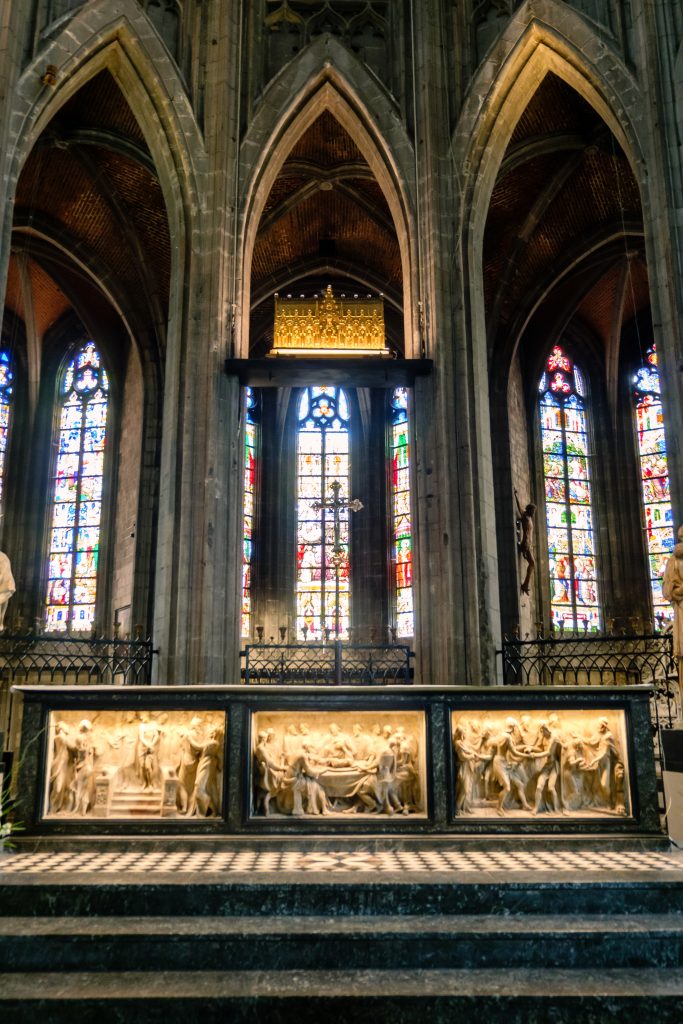 Deze gotische kerk uit de 15e eeuw is groots, indrukwekkend en rijk aan kunstschatten. Vergeet zeker niet binnen te kijken – de beelden, glasramen en de relikwieën zijn het waard.