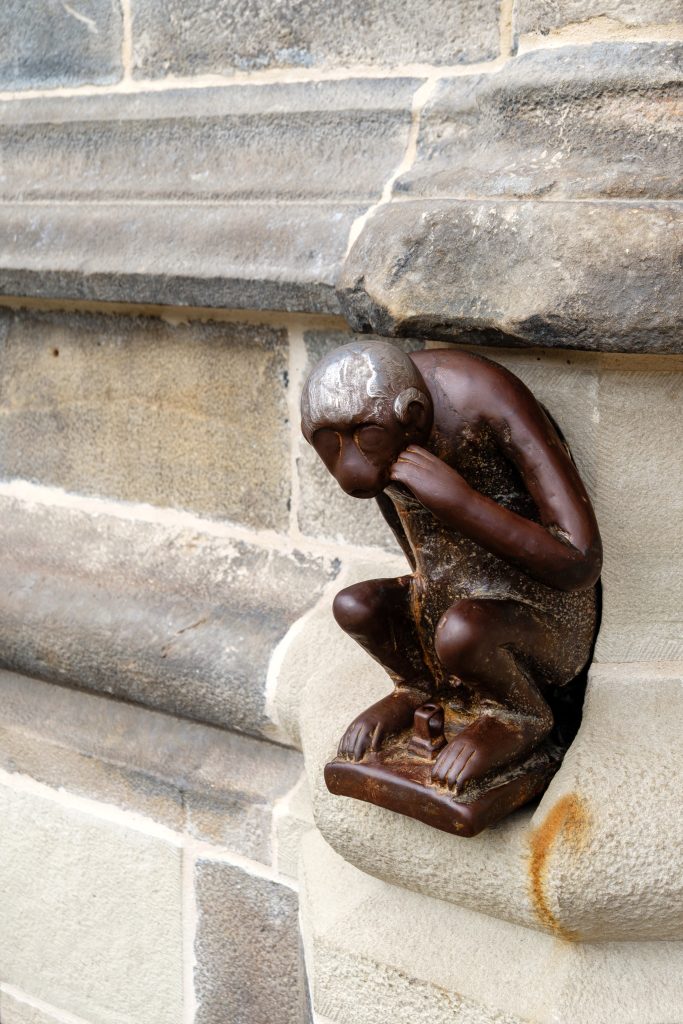 Het kloppend hart van Mons. Historische gevels van gotiek tot neoclassicisme tot renaissance. Het stadhuis, in gotische stijl, dateert van de 15e eeuw. Op de gevel zit de beroemde Grand Garde Monkey. Wrijf met je linkerhand over het kopje voor geluk. (Wij deden het uiteraard – je weet nooit.)