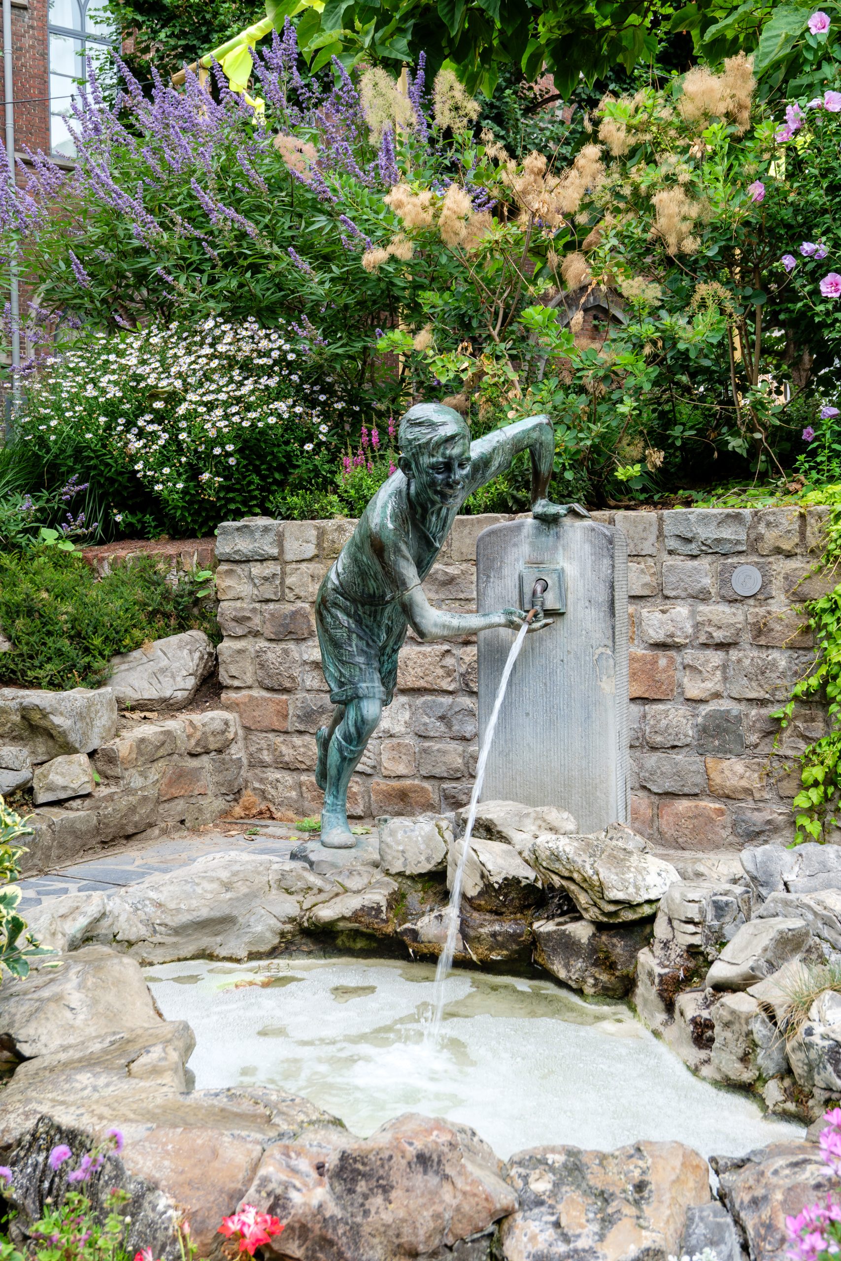 Een rustige groene zone vlakbij het stadhuis met enorm veel bloemen. Kijk goed: ergens staat Le Ropieur, een ondeugend bronzen jongetje dat plots water spuit. Wij bleven nét droog.